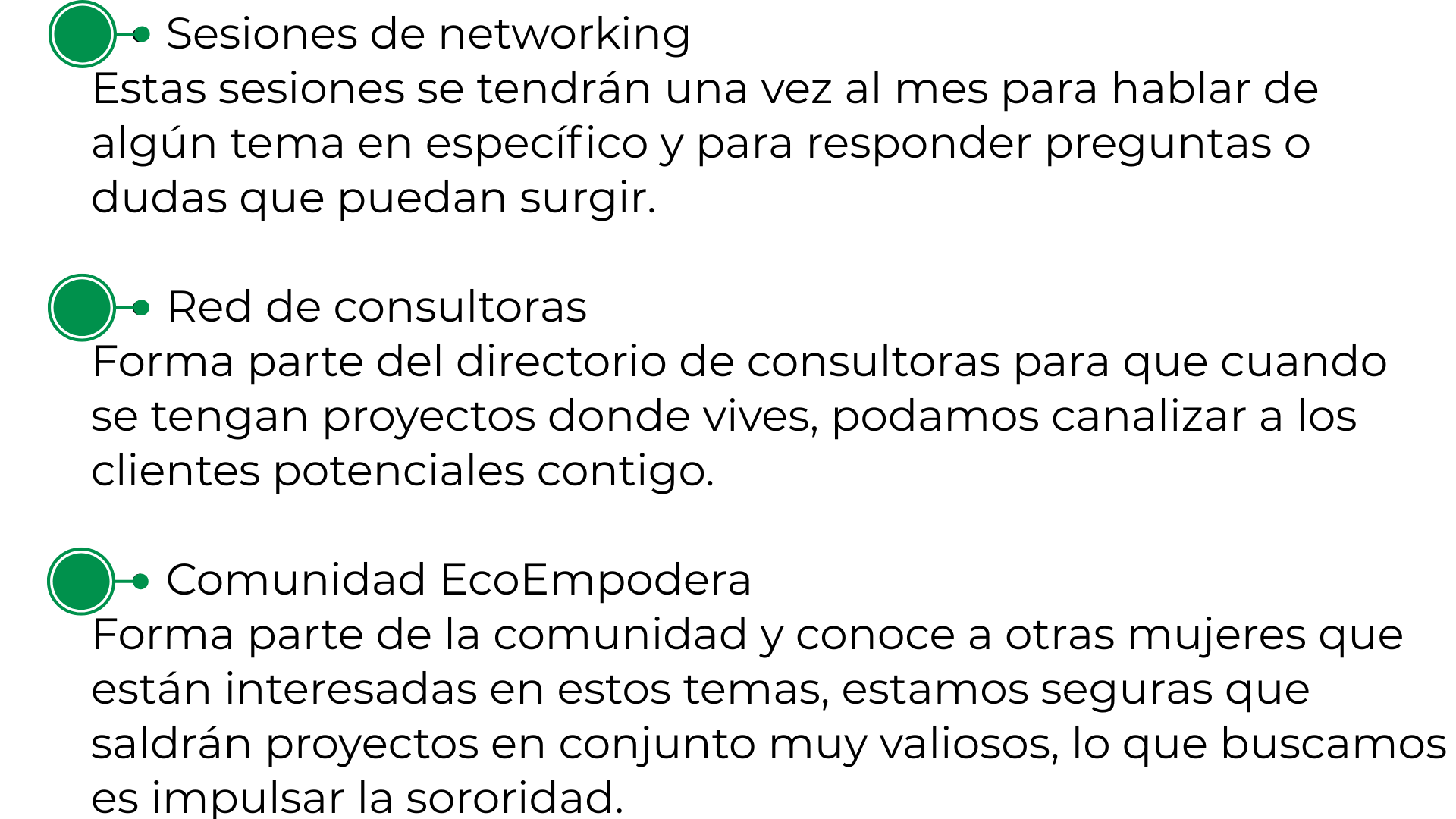 Además al ser parte de la comunidad ECO Empodera tendrás acceso a: